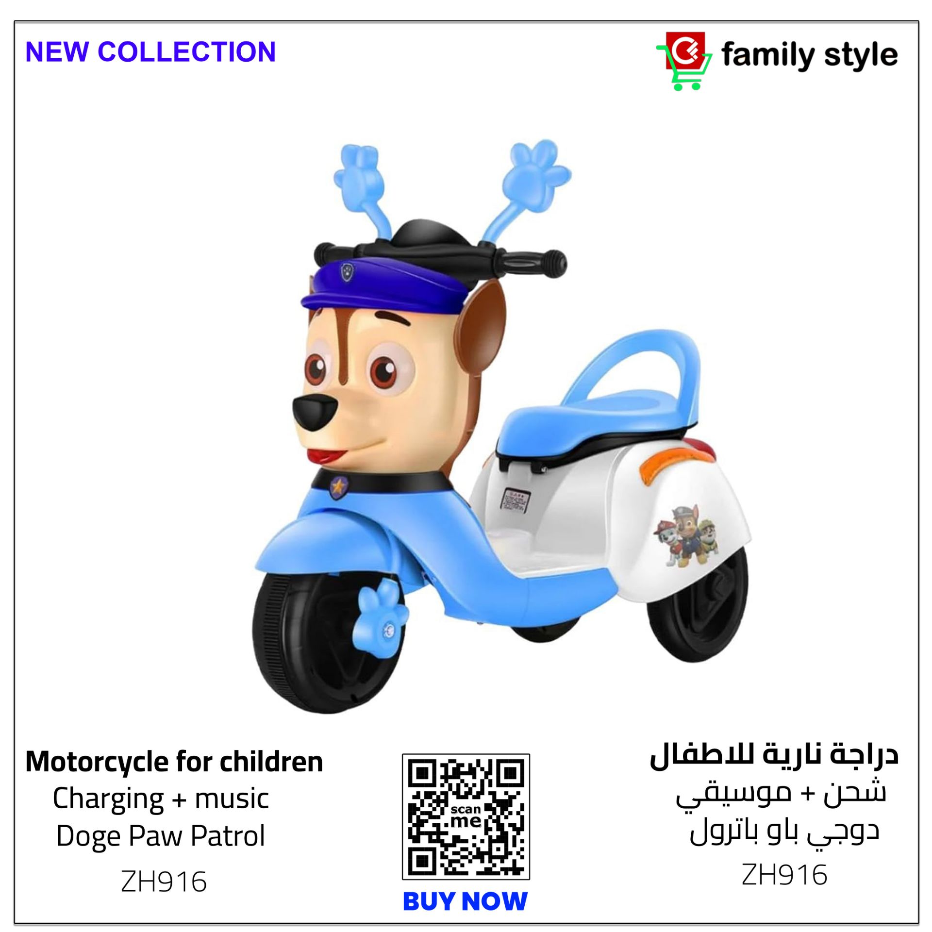 دراجة نارية كهربائية للأطفال "باو باترول"