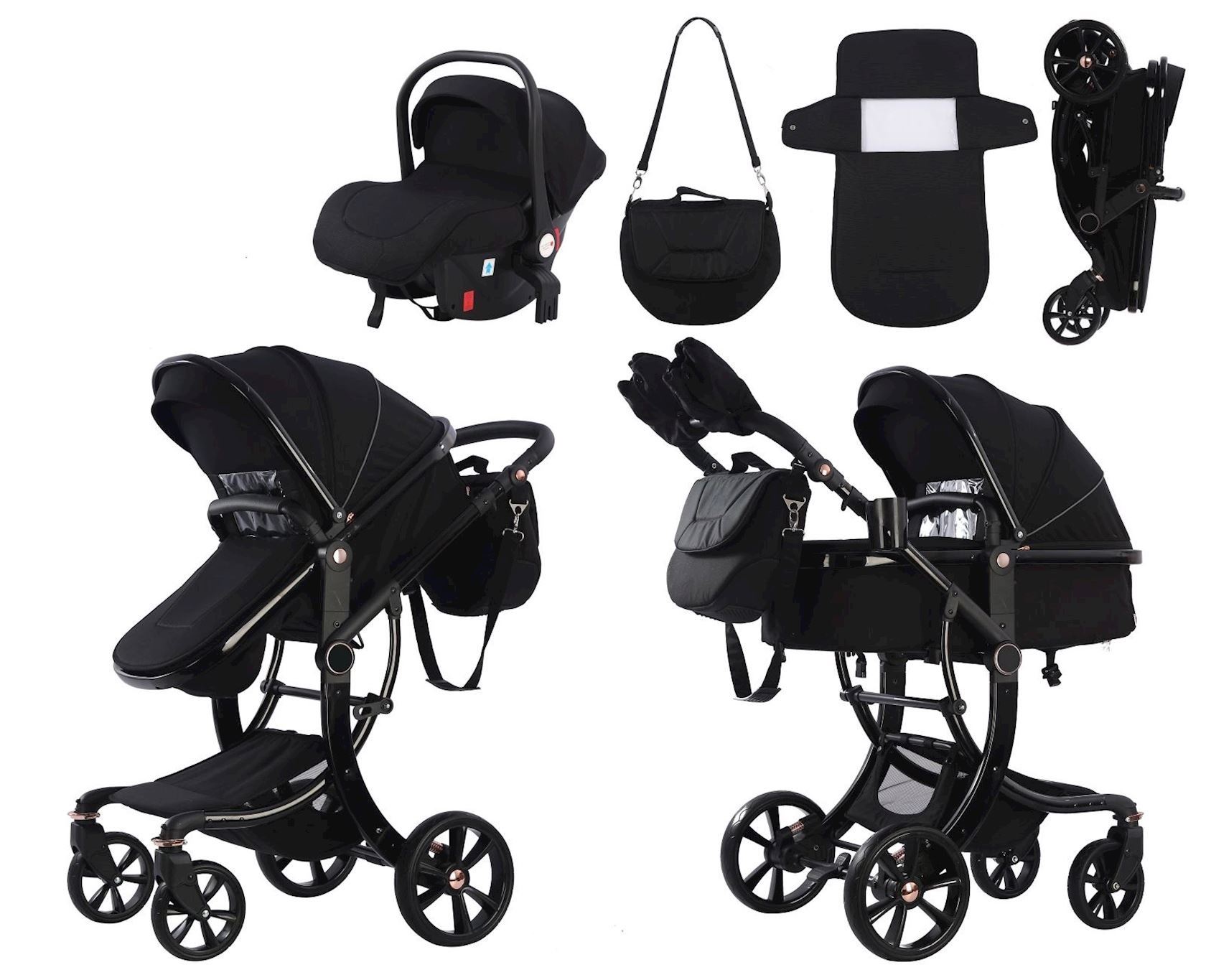 تصميم متعدد الوظائف (3 في 1): يمكن تحويلها بسهولة لتكون سرير حمل (Carrycot) مسطح ومريح للمواليد الجدد، أو مقعد عربة (Stroller Seat) لوضعيات الجلوس والاستلقاء، وتأتي مع مقعد سيارة للأطفال (Car Seat) يمكن تركيبه على الهيكل